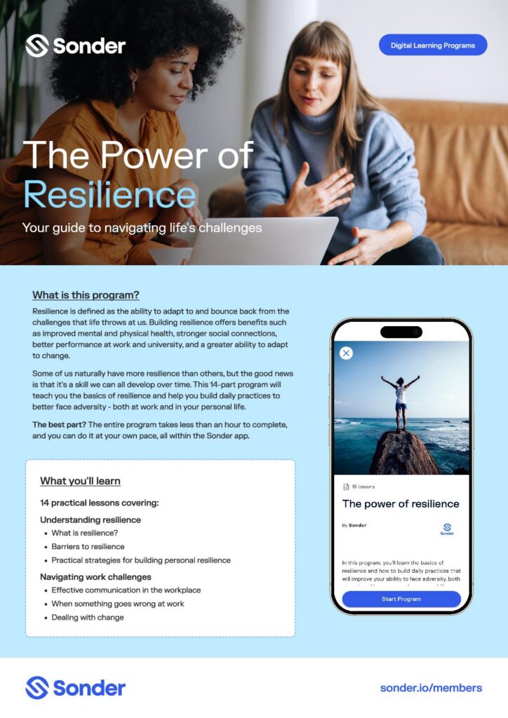Ongoing support and resources to help your people manage stress, adapt to change and strengthen their ability to bounce back.