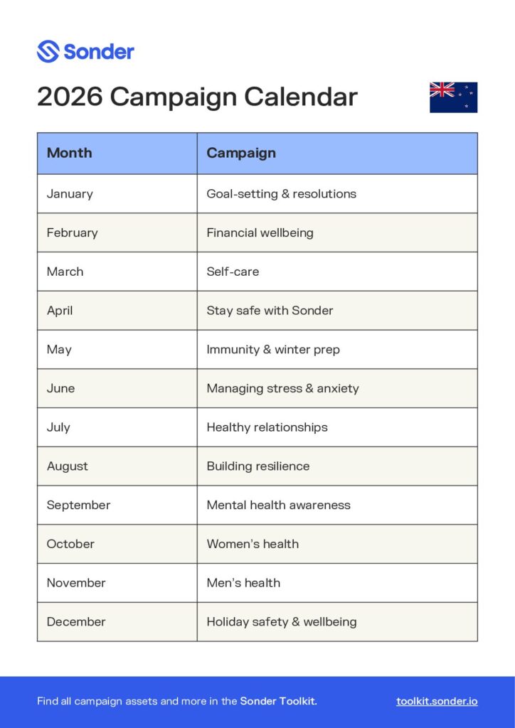 NZ: 2026 Sonder Campaign Calendar