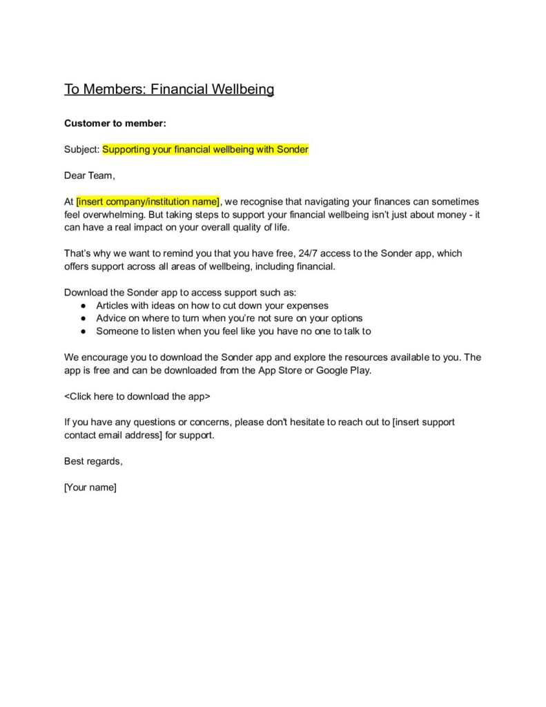 Email template: Financial wellbeing