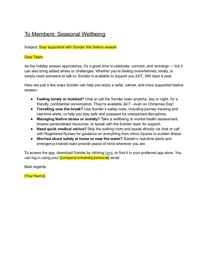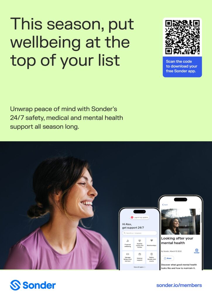 Explore resources to help your people look after their mental health, stay connected, and navigate the festive season safely – with support from Sonder available 24/7, all season long.