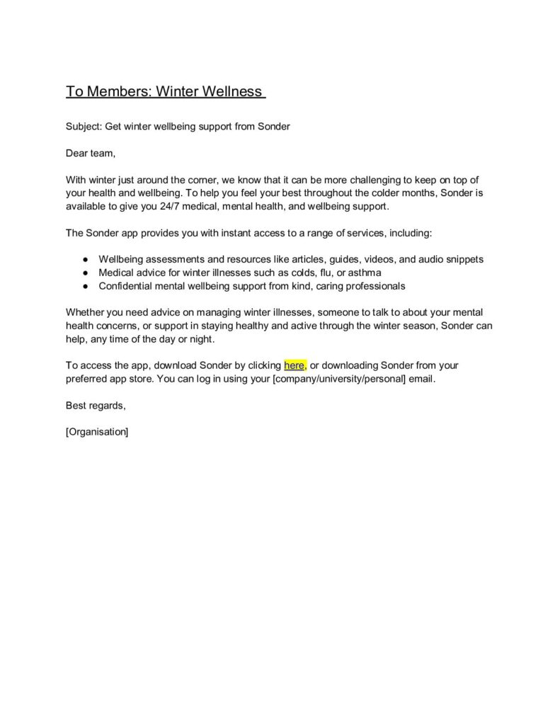 Email template: Winter wellbeing