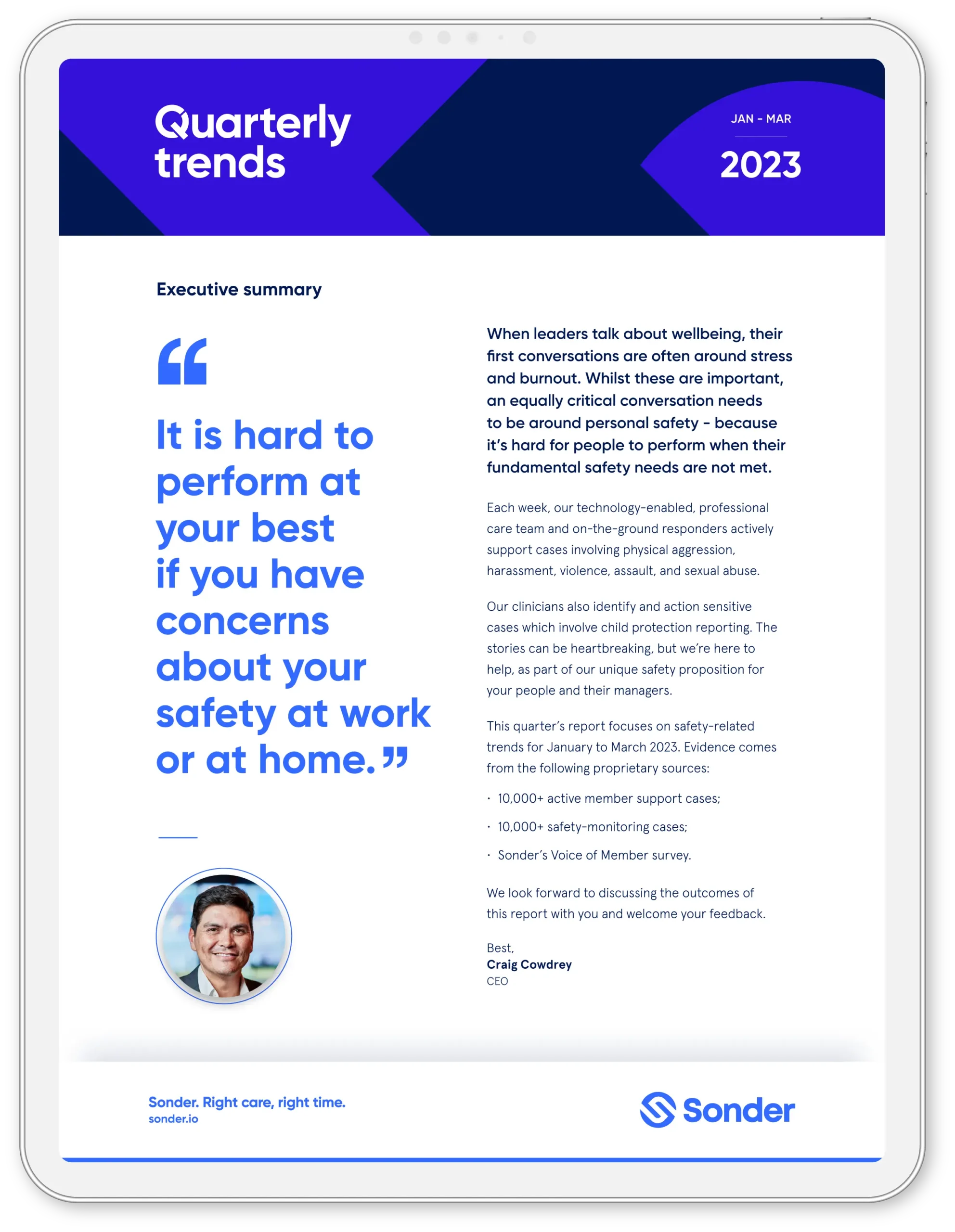 Quarterly wellbeing trends