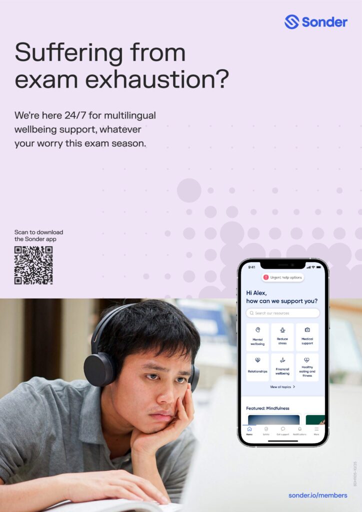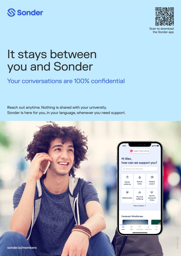 Whether it's exam stress and fatigue, financial support or support settling into a new country or the student lifestyle, Sonder is here to support.